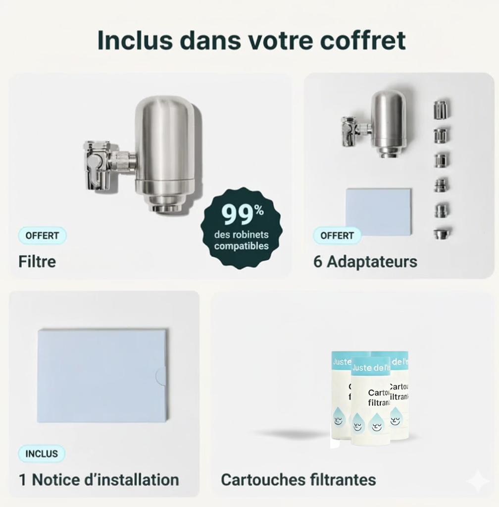 Oui, il est compatible avec 99 % des robinets présents sur le marché. Des adaptateurs sont inclus dans votre coffret si nécessaire, et notre service client vous accompagne en cas de doute.