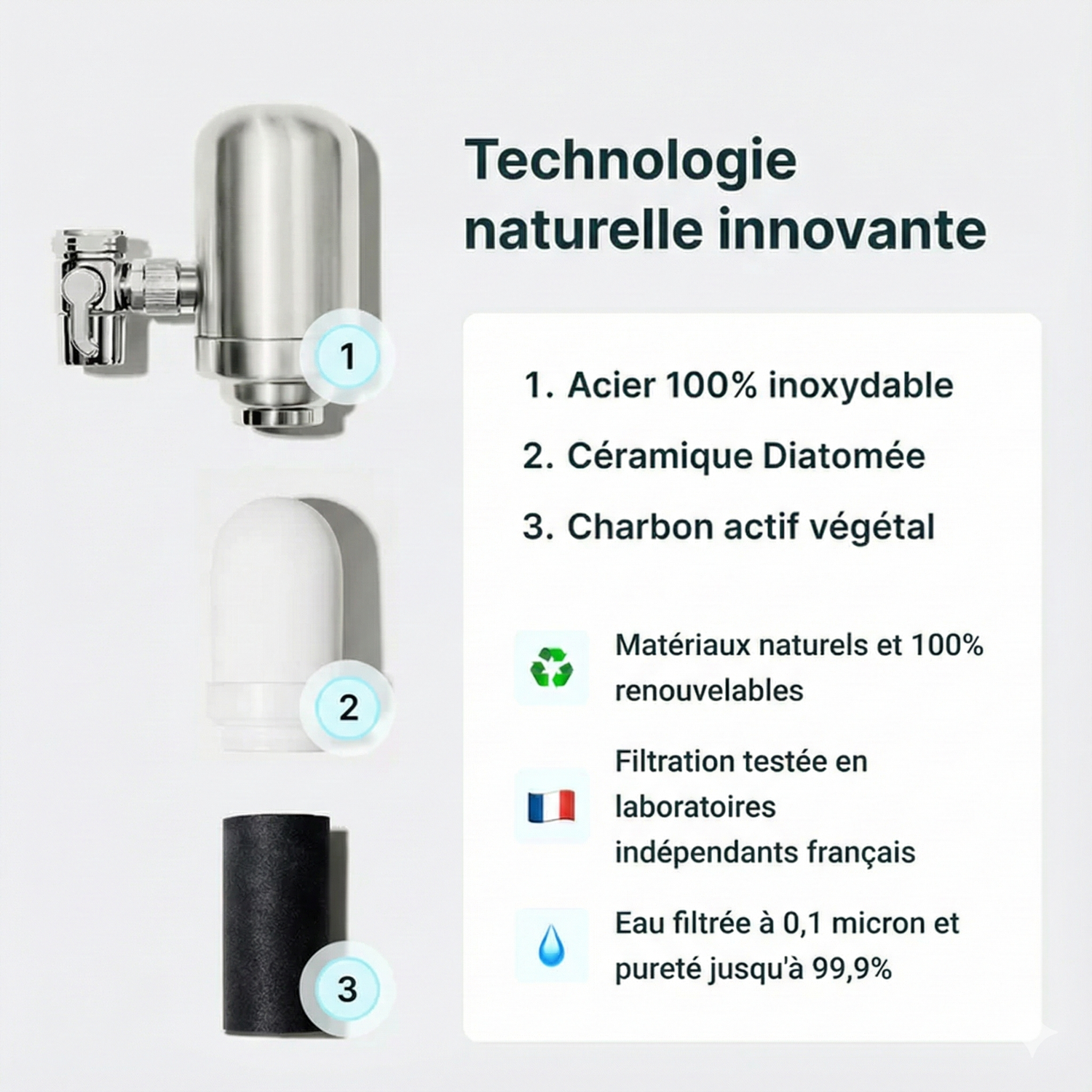 Élimine Chlore, Métaux Lourds & Pesticides Installation sans Outils en 2 Minutes Économisez jusqu'à 300€ par An